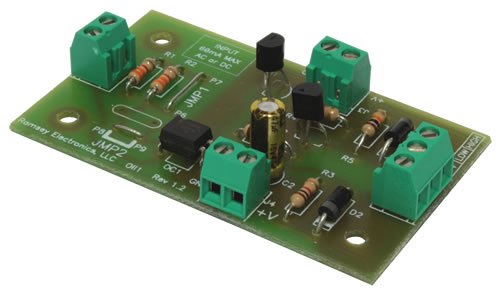 The OM2 provides an optically isolated interface between two devices. It can be used to convert nearly any AC or DC signal to logic level signals. It can also be used to activate a relay upon detection of an input signal. BUT the really great thing about the OM2 is the input and output are totally isolated from each other! Use virtually any voltage input level above 1.5 volts (as long as long as the input current is limited to a maximum of 60mA). The input can be a simple DC level or an AC signal with a frequency up to 250KHz. The input and output are optically isolated from each other to 5000 volts AC (rms), and the output can drive up to 150mA at up to 40VDC. It even provides active low and high outputs when the input is activated!